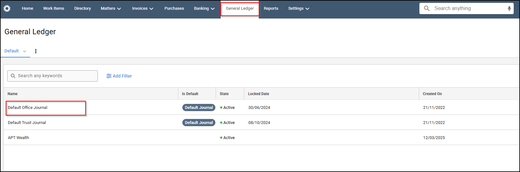 This guide will step through the process of posting a General Journal transaction in the Office Ledger/Journal.