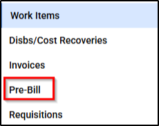 A Matter Pre-bill report shows a breakdown of financial summary of unbilled fees, disbursements and cost recoveries that are finalised to be billed.