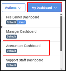 2. Use the My Dashboards drop-down to select the Accountant Dashboard.