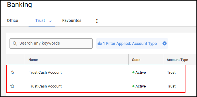 3. Select the relevant client account from the Client/Trust Cash Accounts section.