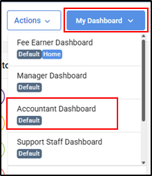 2. Use the My Dashboards drop-down to select the Accountant Dashboard.