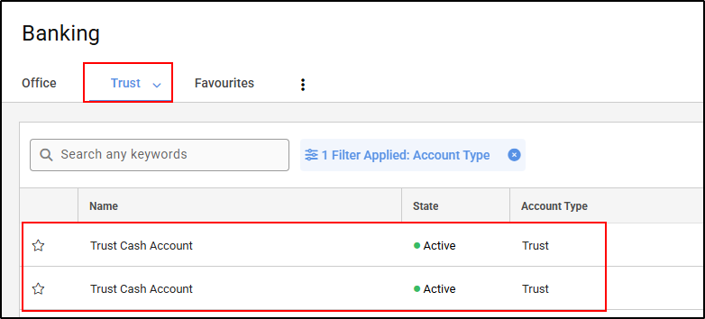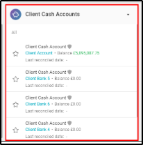 1. Select the relevant Client/Trust Cash Account from the section of the Accountant Dashboard