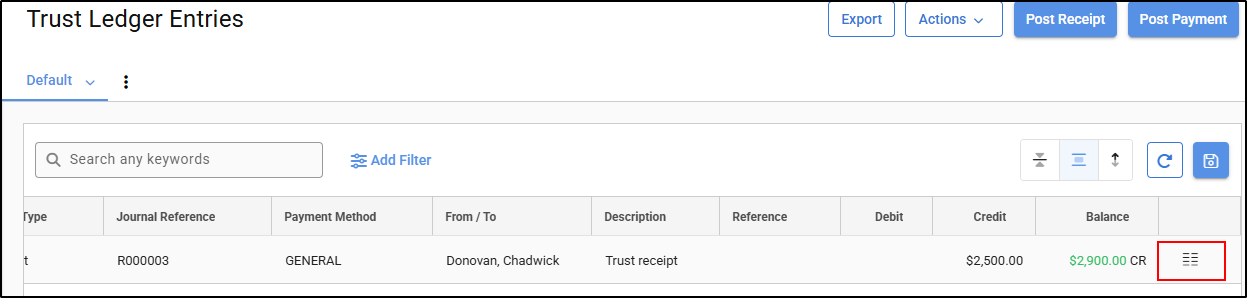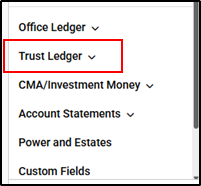 2. Select Client/Trust Ledger from the menu on the right hand side.